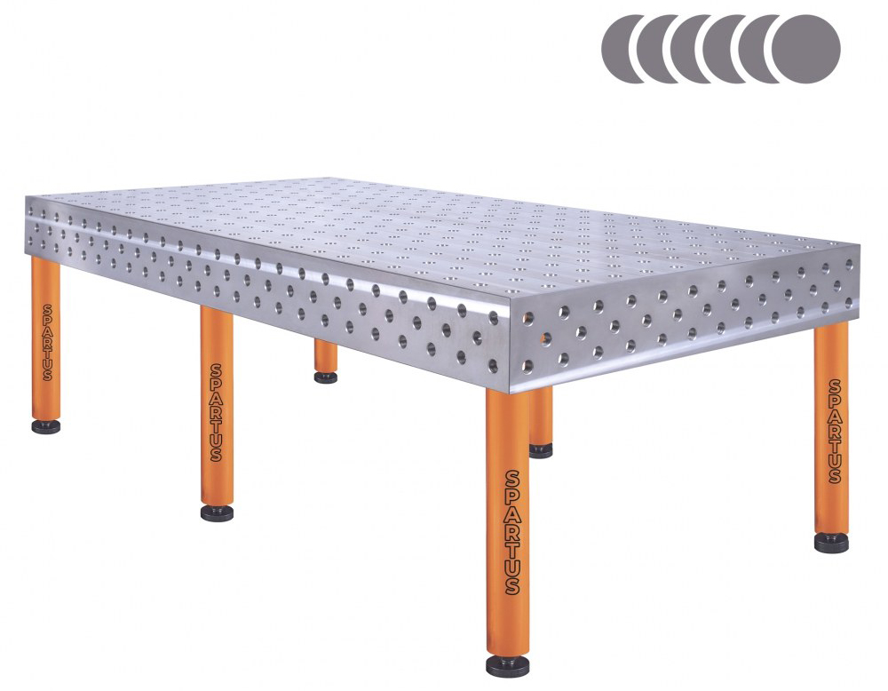 SPARTUS HERMES welding tables are available in several practical size variants, allowing for a perfect fit to the specific requirements and dimensions of the workstation. The available worktop sizes are: 1500×1000 mm, 2000×1000 mm, 2400×1200 mm, and 3000×1500 mm. This variety enables optimal use of workshop space and ensures comfortable work regardless of the size of the welded components.