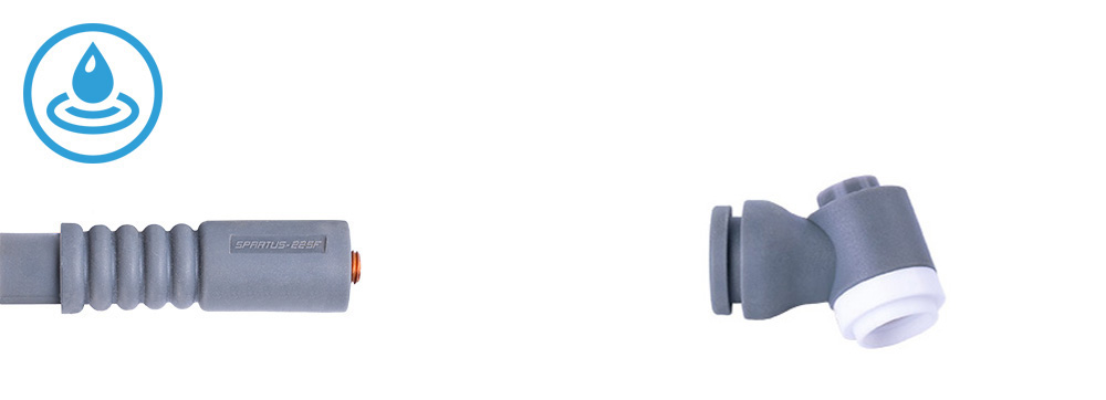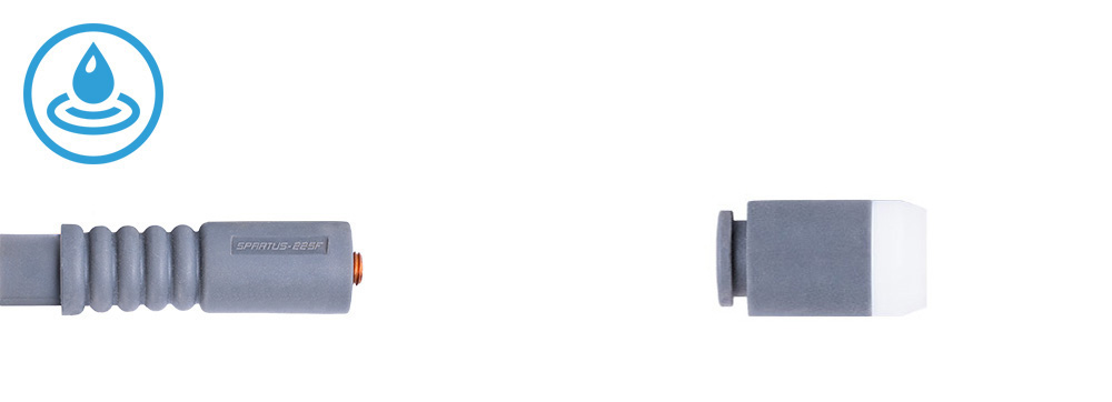 Cotton drainded hoses, textile-rubber cover of the cable package, 1 meter of leather behind the handl.