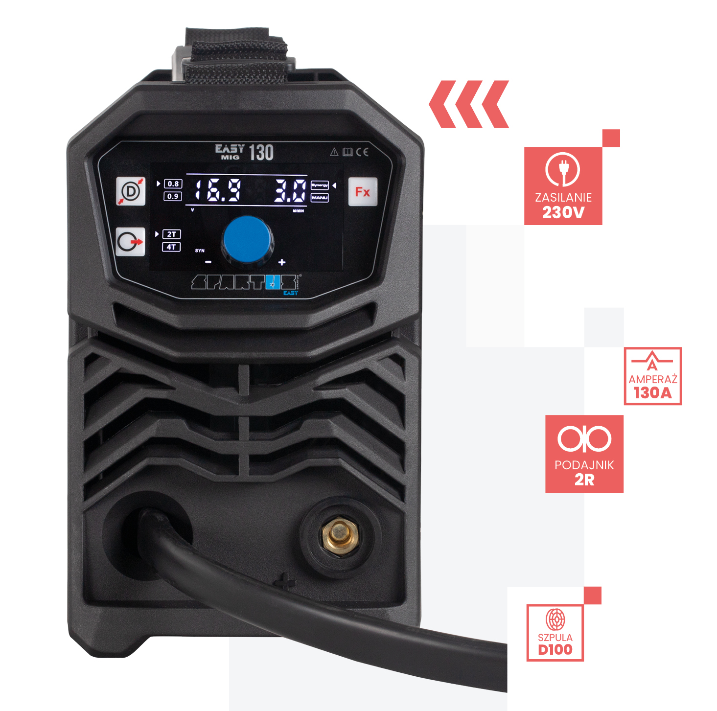 SPARTUS Easy MIG130 to spawarka inwertorowa MIG/MAG, która łączy prostotę obsługi z mobilnością i wytrzymałością. Doskonale sprawdzi się przy naprawach, w warsztacie samochodowym czy podczas lekkich prac konstrukcyjnych. Niewielka masa, intuicyjne sterowanie i solidna konstrukcja czynią z niej niezastąpione narzędzie w codziennych zastosowaniach.