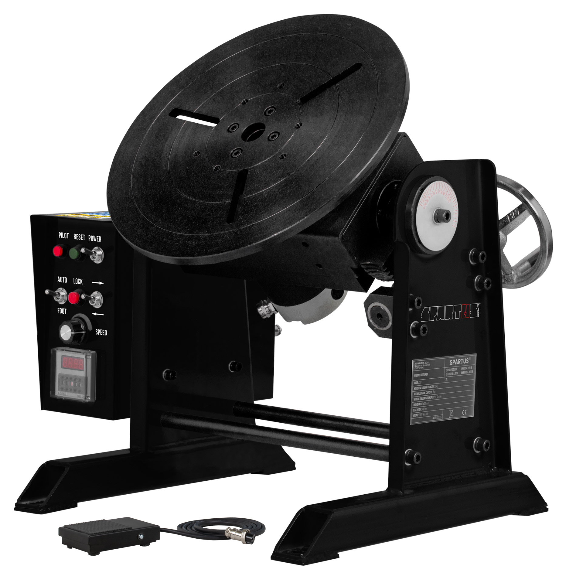 Pozycjoner spawalniczy SPARTUS 30P to nowoczesne urządzenie wspomagające proces spawania, umożliwiające precyzyjne obracanie i pozycjonowanie elementów o maksymalnej nośności 30kg. Dzięki zasilaniu jednofazowemu 230V zapewnia wygodną i uniwersalną pracę w różnych warunkach warsztatowych. Płynna regulacja prędkości obrotowej oraz możliwość zmiany kierunku obrotu pozwalają na optymalne ustawienie detalu, co zwiększa komfort pracy spawacza i poprawia jakość wykonywanych połączeń. Solidna konstrukcja oraz prosty panel sterowania sprawiają, że pozycjoner SPARTUS jest niezawodnym narzędziem zarówno w produkcji seryjnej, jak i pracach jednostkowych.