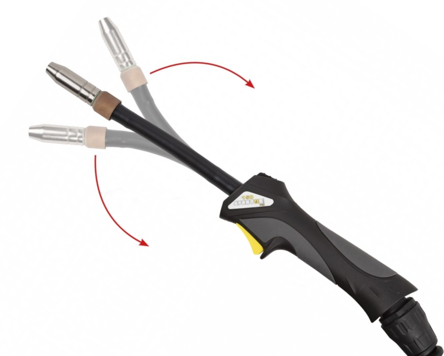 Dla zwiększenia elastyczności i wygody pracy, Spartus PRO dostępny jest również w wersji z giętkim korpusem. Rozwiązanie to pozwala na precyzyjne dopasowanie pozycji uchwytu do miejsca spawania, co znacząco ułatwia dostęp do trudno osiągalnych punktów. Giętki korpus podnosi komfort pracy i daje spawaczowi większą kontrolę nad prowadzeniem uchwytu w wymagających warunkach.
